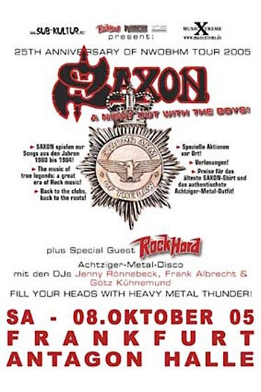 durch die Schließung der Live Arena wird das Saxon-Konzert am 08.10.05 velegt.