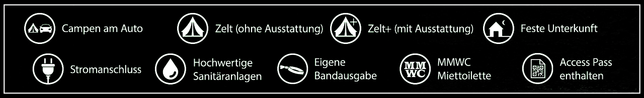 Lust auf mehr? Könnt ihr haben. Hier erwarten euch bequeme Betten, ein Stromanschluss in allen Zelten, ein eigener Gastronomie- und Loungebereich, hochwertige Sanitäranlagen, Duschen und ein Willkommensgeschenk.