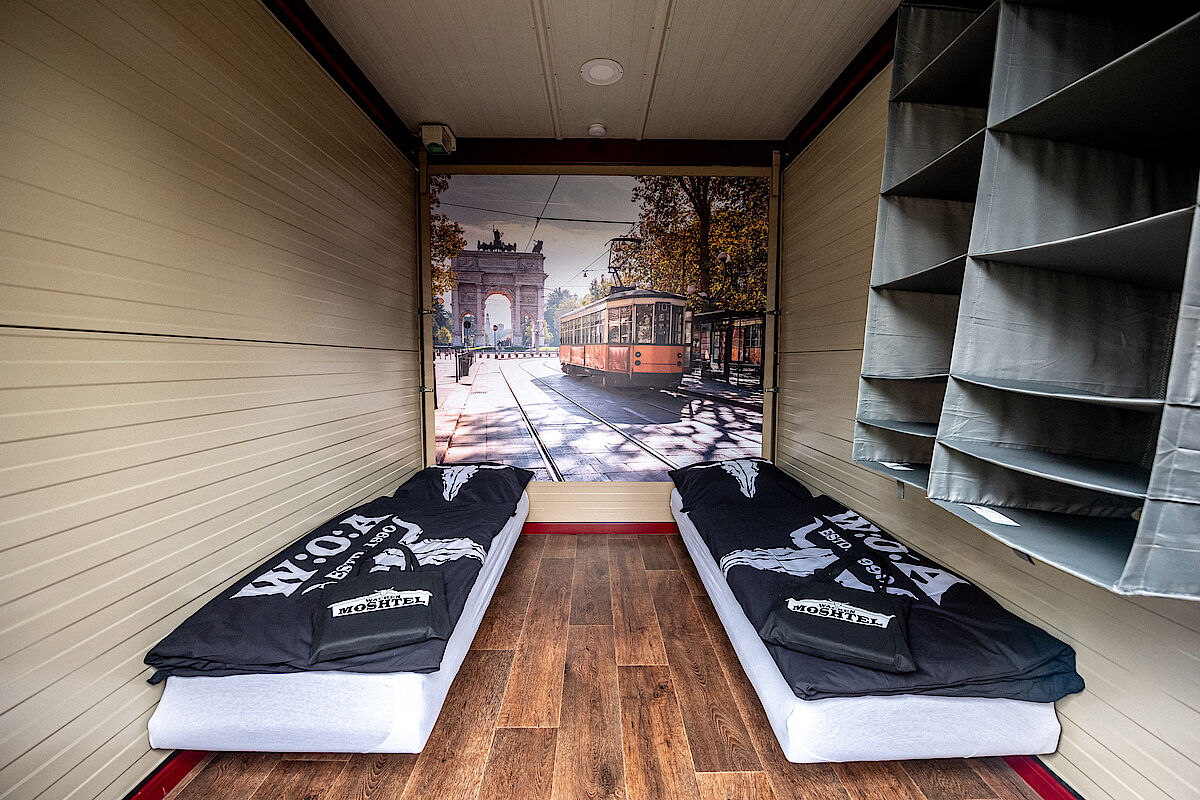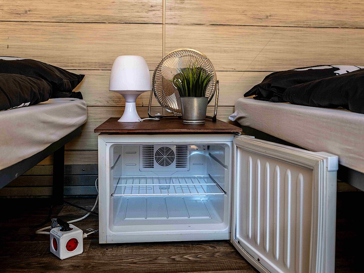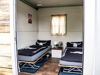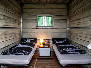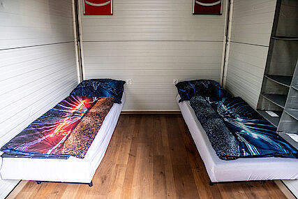 Auch in unserer Hotel Box – mit einer Breite von ca. 3,60 Metern und einer Länge von ca. 2,50 Metern – können ganz bequem zwei Personen übernachten.