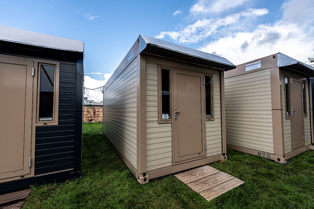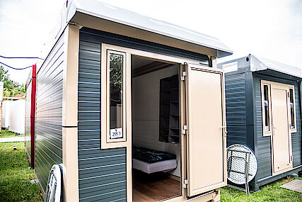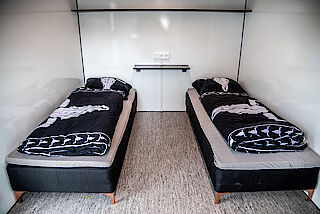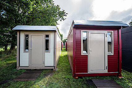 Alles klar! Dann habt ihr die Wahl zwischen einem Einzel-Container (ca. 11 Fuß groß) zur alleinigen Nutzung und einer Wohneinheit in einem Doppel-Container (ca. 20 Fuß groß), der durch eine Mittelwand in zwei komfortable Wohneinheiten à ca. 10 Fuß getrennt ist. Beide Container-Wohnvarianten sind für bis zu zwei Personen geeignet.