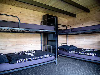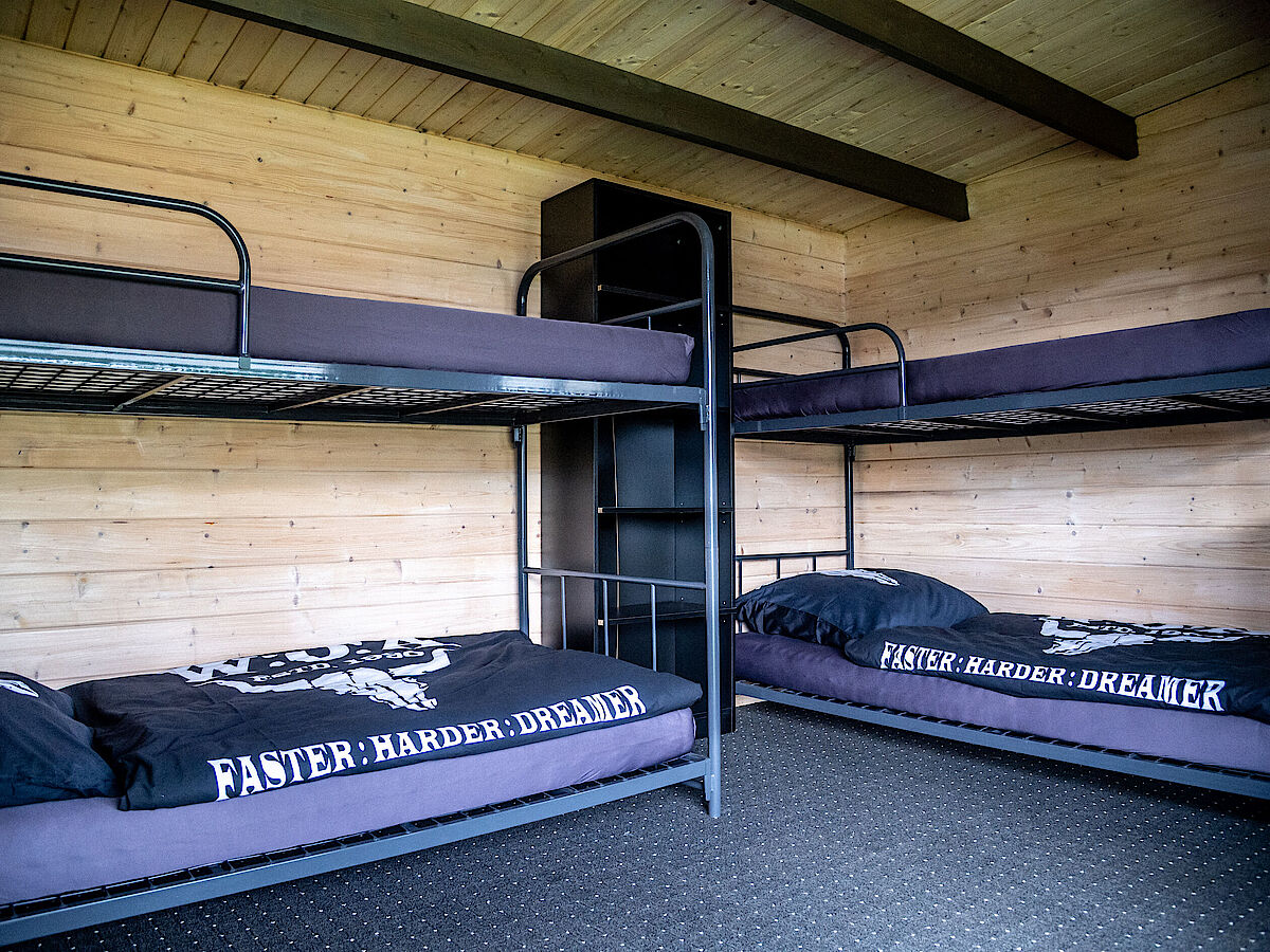 Wenn ihr es richtig krachen lassen wollt, dann schnappt euch eine Blockhütte. Vier Personen können hier in zwei Etagenbetten schlafen. Ca. 3,80 Meter lang und ca. 2,80 Meter breit ist euer privates Festivalzuhause, das euch jede Menge Komfort und Extras bietet.