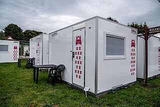 Hinweis: Der Doppel-Container ist erst ab Dienstag, 28.07.2026, 18 Uhr bezugsfertig. - Ausstattung der Unterkünfte: Bestens! Jede Unterkunft bietet eine Grundausstattung bestehend aus Strom, Licht, Betten mit bezogenen Bettwaren und Sitzmöglichkeiten für die Anzahl der Bewohner pro Unterkunft. Extras zur Grundausstattung seht ihr in den jeweiligen Produktbeschreibungen.