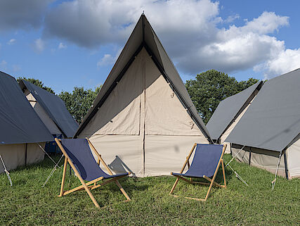 - Sechs verschiedene Unterkunftstypen: für zwei bis sechs Personen. Ihr könnt auch euer eigenes Zelt mitbringen und eine Strom-Parzelle nutzen.