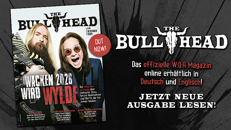 In dieser Ausgabe erzählt uns Black-Label-Society-Boss Zakk Wylde von seinem Ziehvater Ozzy Osbourne, spricht über letzte Nachrichten und darüber, welche Werte der „Madman“ ihm mitgab. Chris Caffery von Savatage erklärt, warum er ein Wacken-Tattoo auf dem Oberarm trägt, wie sehr sein Spiel noch heute von Criss Oliva beeinflusst ist und was bei der legendären Doppelshow von TSO und Savatage 2015 auf dem Holy Ground schief lief. Thundermother-Gründerin Filippa Nässil kam kurz vor ihrem Interview mit “The Bullhead” aus der Notaufnahme. Was passiert ist und warum sie trotzdem mit bester Laune in die Feiertage startet, lest ihr ebenfalls in der neuen Ausgabe. Außerdem waren wir mit Wacken-Mitgründer Holger Hübner beim Blutspenden in Berlin, haben mit Kompagnon Thomas Jensen über das 35. Jubiläum gesprochen und sind schon einmal ins Zillertal gefahren, um zu testen, ob vor Ort alles für das kommende Full Metal Mayrhofen bereit ist. Spoiler: Mayrhofen hat mit 1,0 bestanden!
