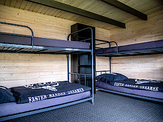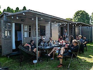 Go all out with a Blockhütte! Designed for four people with two bunk beds, it measures approx. 3.80 meters long and 2.80 meters wide. Your private festival retreat offers plenty of comfort and extras.